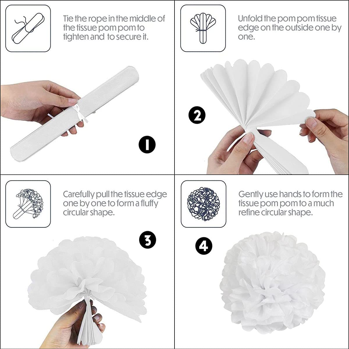• HOW TO USE - Paper fans and pompoms flower arrives in flat pack. Unfold each fan and stick the fan with back-stickers, hanging with the string. You can use clip to fasten the fan, repeat-use to meet the idea of Eco-friendly and use the string attached to hang. Unravel the entire strand of stars and hang it up to avoid tangle, don't unwrap it in a rush. the curtain is self-adhesive tape on the top, very easy to put up and take back down