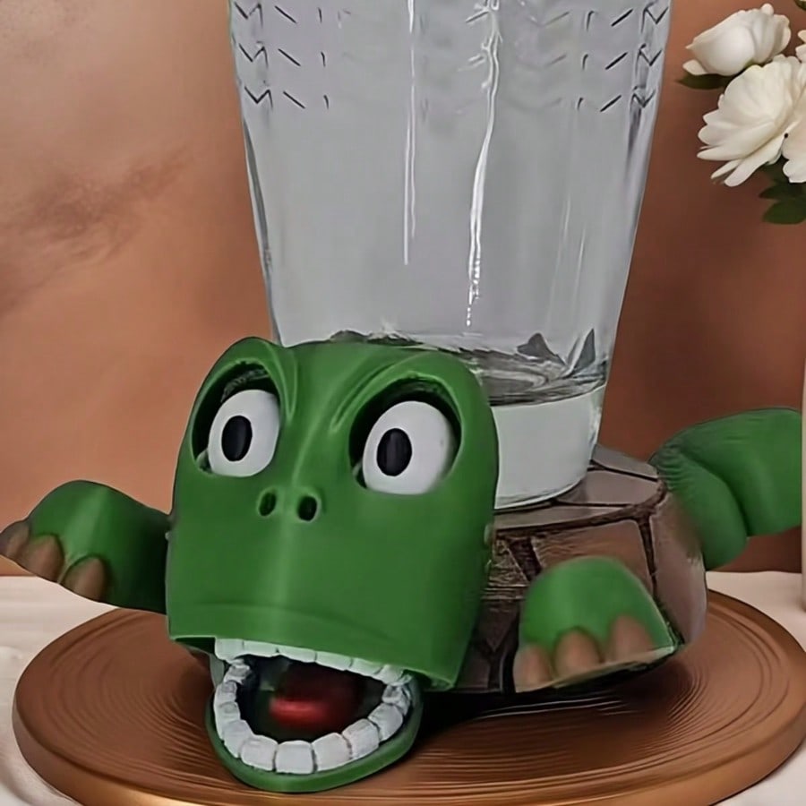 Features a clever 3D-printed turtle design with an expressive face that “opens its eyes” when a drink is placed on its back