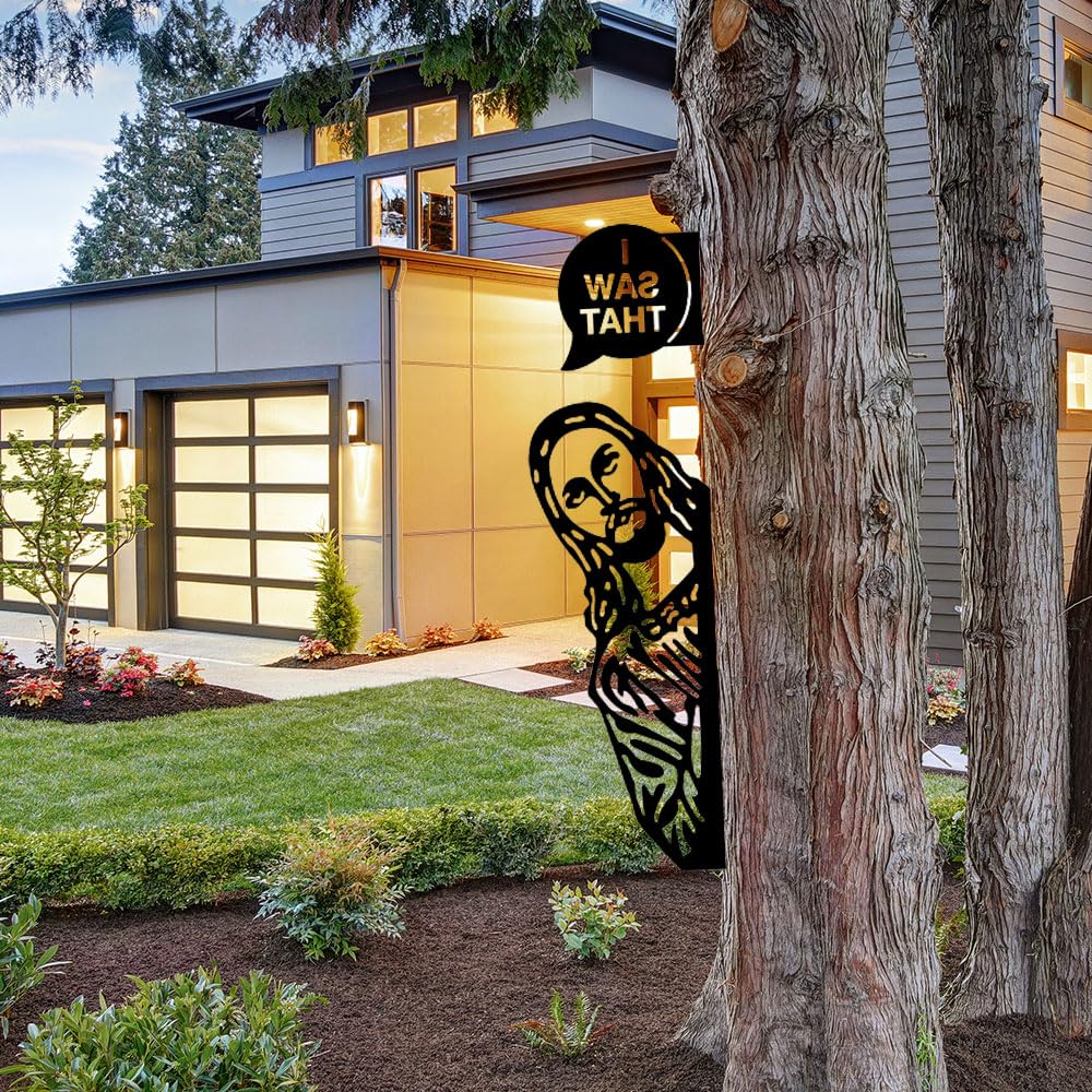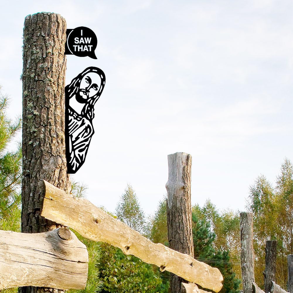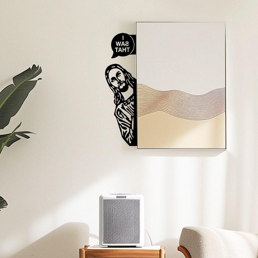 Bring humor and a gentle reminder to your space with this Peek-A-Boo Jesus Metal Sign! Featuring Jesus playfully peeking around the corner, complete with the witty caption "I saw that" above, this charming sign is sure to spark smiles and laughter. Perfect for adding a lighthearted touch to your home, office, or any place in need of a little divine humor.