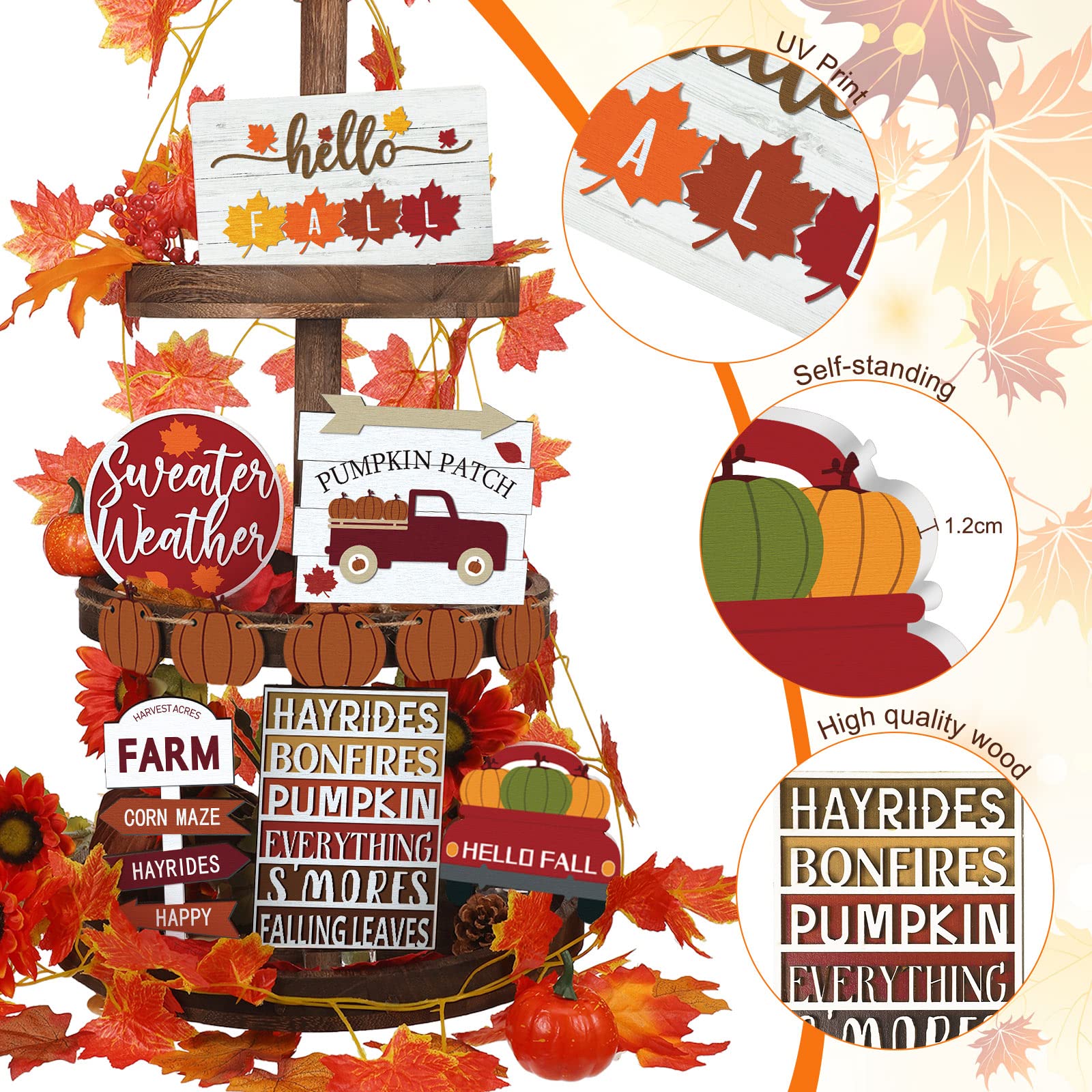 🍁12 Pcs Fall Tiered Tray Decor Thanksgiving Pumpkin Maple Leaf