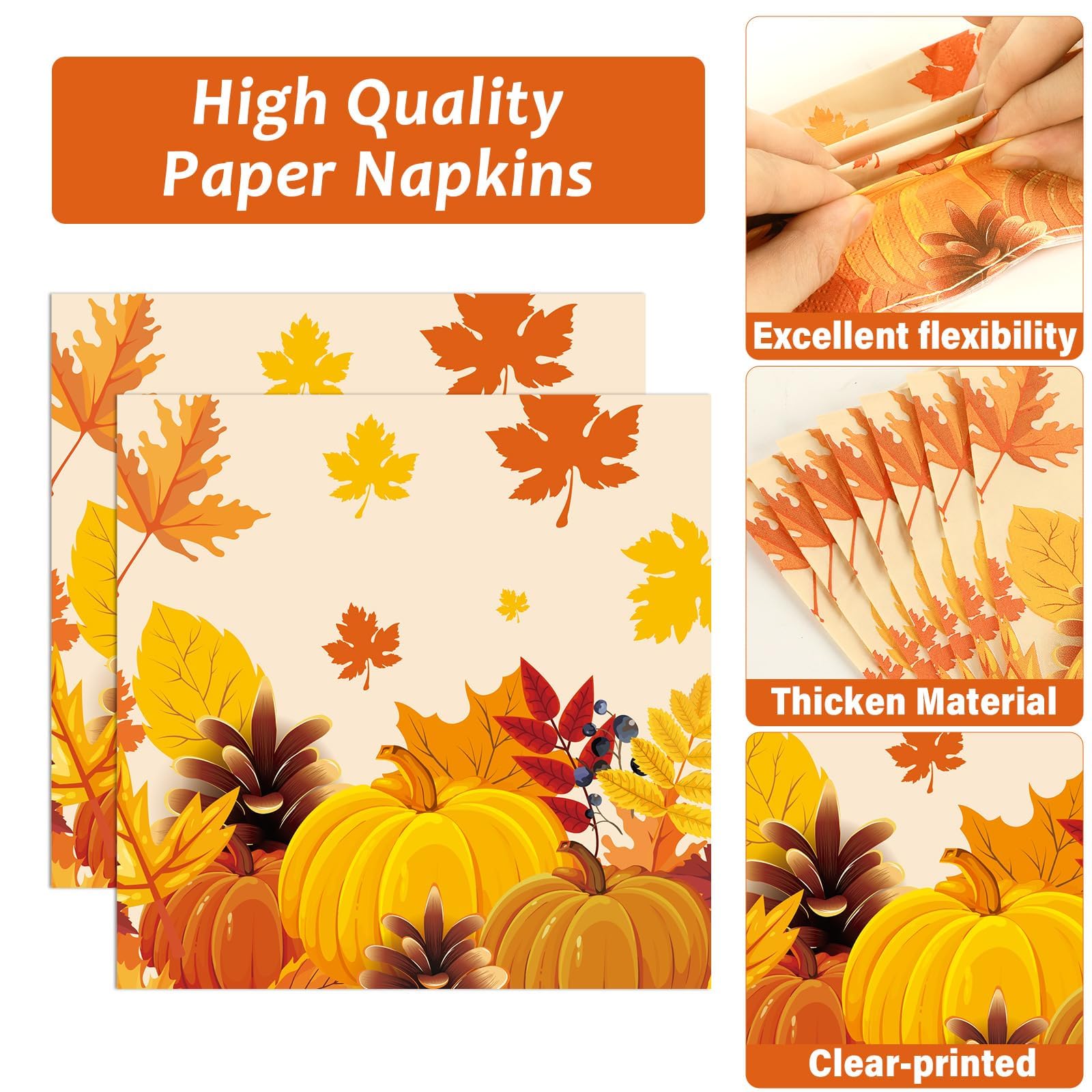 👍【Premium Quality】Our disposable thanksgiving autumn paper plates are made of thick and durable material that is non-toxic, environmentally safe, waterproof and non-harmful to the body; Fall napkins are tough and soft; the fall party supplies printed pattern is clear color printing, not fade