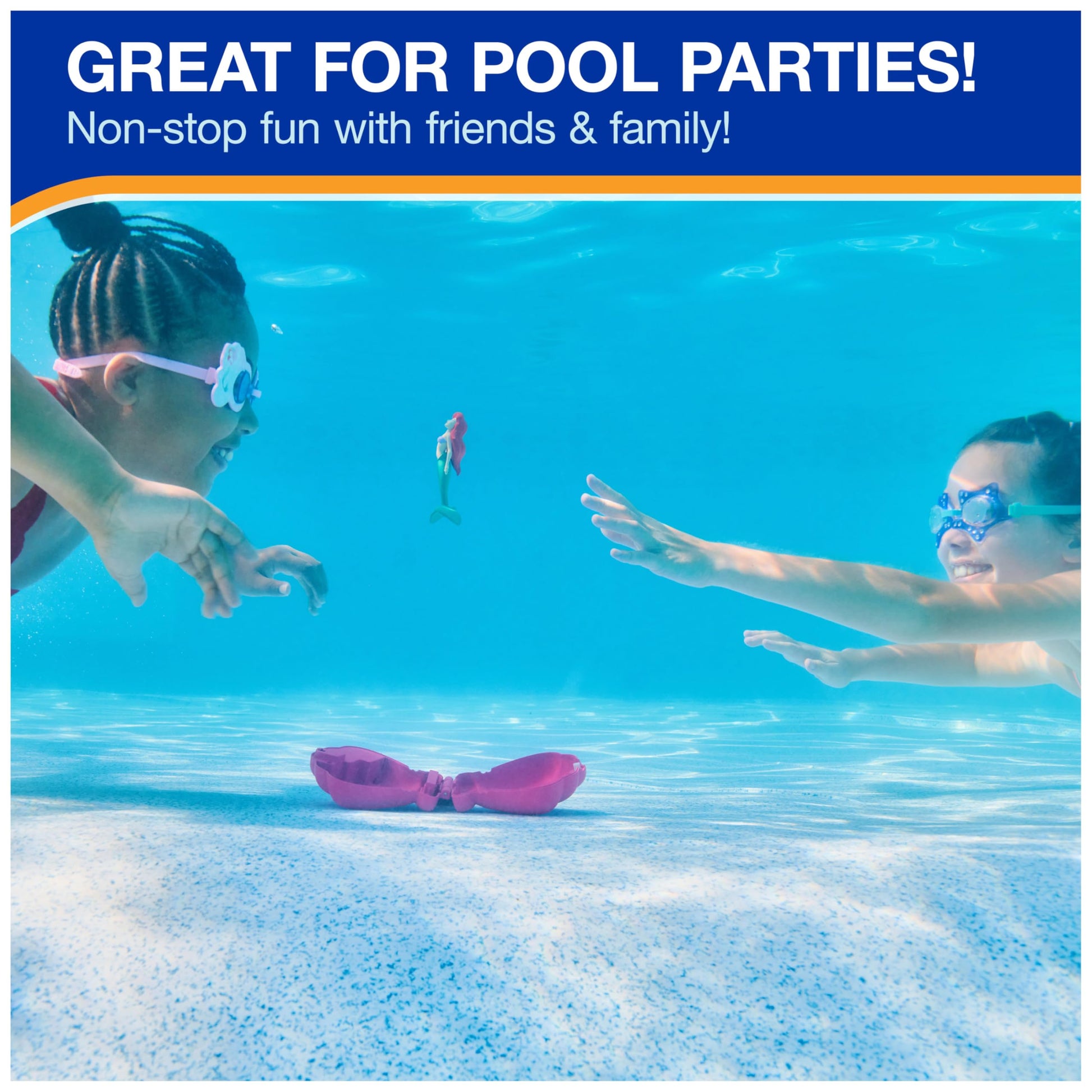 Watch as your favorite Disney Princess, Ariel, magically spirals and swims to the surface of the water with the Swimways Ariel Dive n Surprise! With water-activated technology, Ariel's clam shell slowly fills up with water as it sinks, opening up and releasing Ariel once it reaches the bottom! These kid pool toys are great for everyday play, summer pool parties, and for swim training - kids won't even know they are building their underwater swimming skills! The Dive n Surprise is also small and easy to carry around, making it perfect for pool party favors, pool party supplies and travel, while allowing you to play endless pool games for hours of outdoor fun on the go!