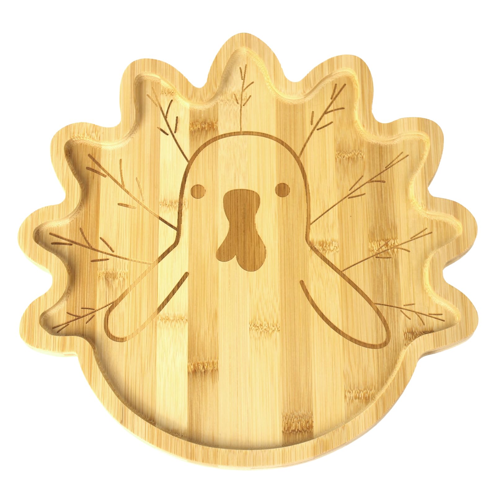 🦃【Turkey Plate】This bamboo turkey platter has a novel turkey look, and the size of the multifunctional aperitif board is 11.4" long x 11.4" wide x 0.6" high, can be used as dinner plates, fall dessert plates and birthday party decorations.