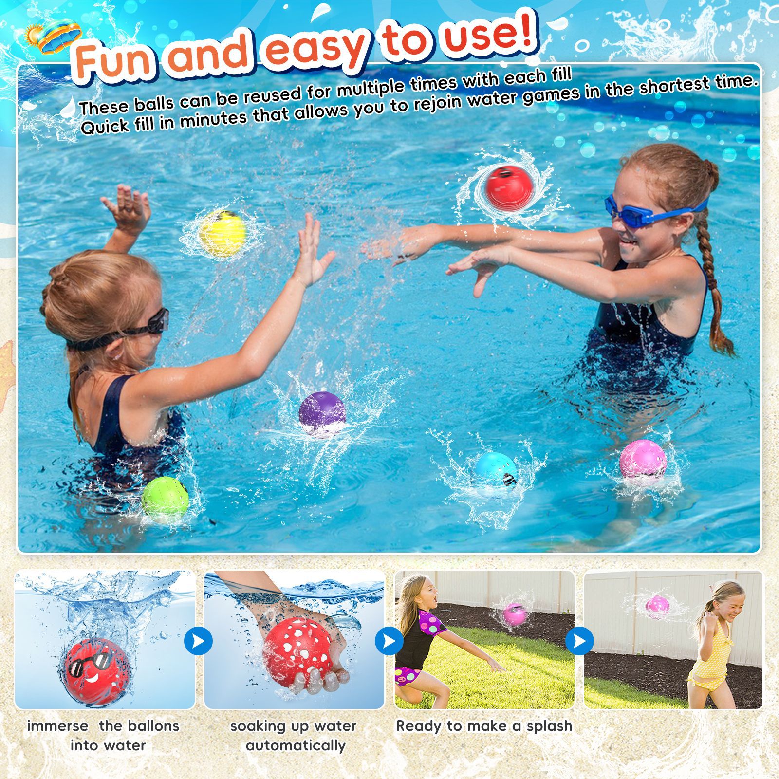 💧Reusable Water Bounce Balloons, Water Game Toys for Outdoor Activities